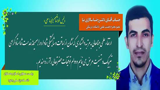 با کمال مسرت، ارتقا مرتبه علمی جنابعالی به دانشیاری را که نشان از تلاش، پشتکار و شایستگی شما در عرصه آموزش و پژوهش میباشد را صمیمانه تبریک عرض مینماییم و برای شما در ادامه این مسیر آرزوی موفقیت، سربلندی و توفیقات روزافزون داریم.
